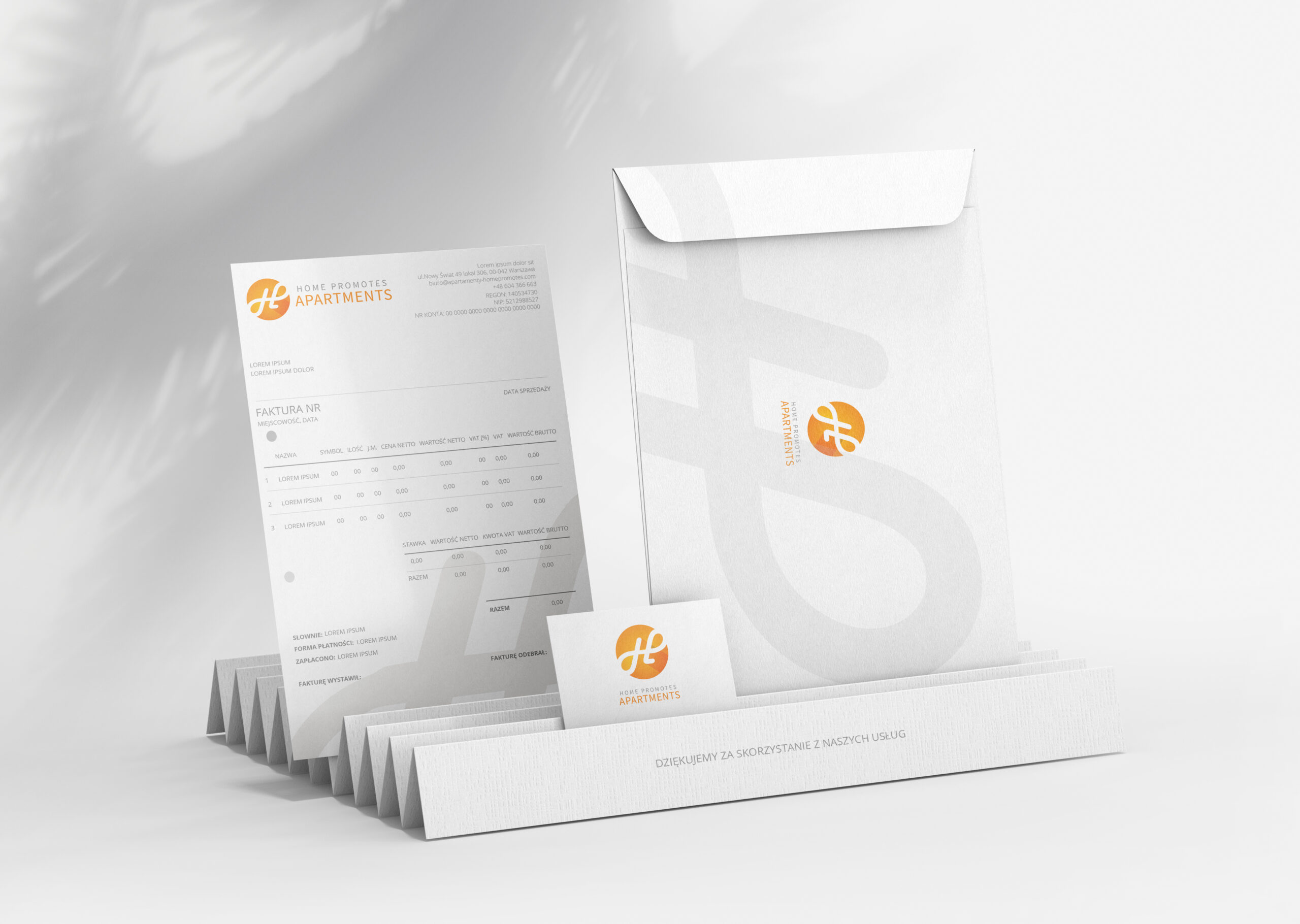 Wykreowałam spójny projekt graficzny dla marki Home Promotes Apartments z Warszawy, specjalizującej się w wynajmie apartamentów. Logo z literą "H" łączy elegancję z nowoczesnością, wykorzystując kontrast pomarańczowych odcieni ze stonowaną szarością. Zaprojektowałem także wizytówki, papier firmowy i karty pobytu, utrzymane w tej samej kolorystyce, tworząc spójny i profesjonalny wizerunek marki. Projekt podkreśla prestiż i komfort oferowanych apartamentów, budując zaufanie klientów.