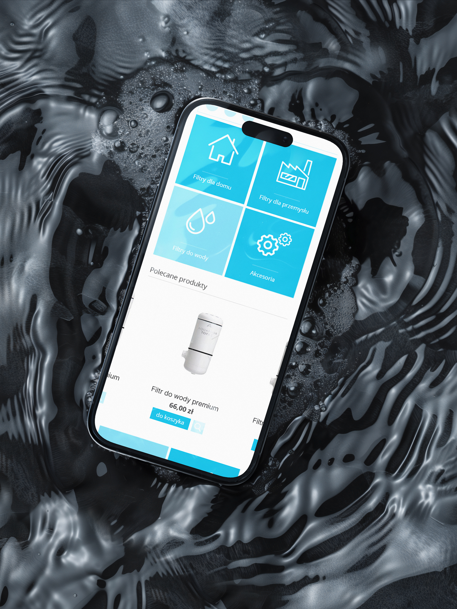 Stworzyłam projekt strony internetowej dla sklepu Aquafiltry, specjalizującego się w sprzedaży filtrów do wody oraz akcesoriów. Strona została zaprojektowana w nowoczesnej kolorystyce łączącej odcienie niebieskiego i grafitu, co podkreśla czystość i techniczny charakter oferty. Przejrzysta struktura i funkcjonalny układ zapewniają użytkownikom komfortowe zakupy i łatwy dostęp do produktów.