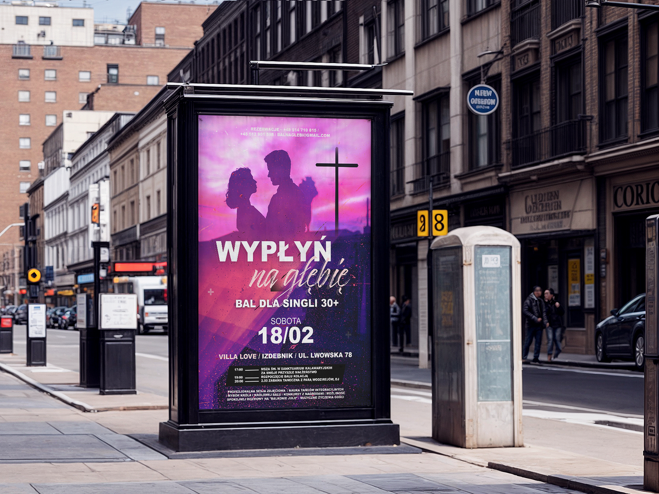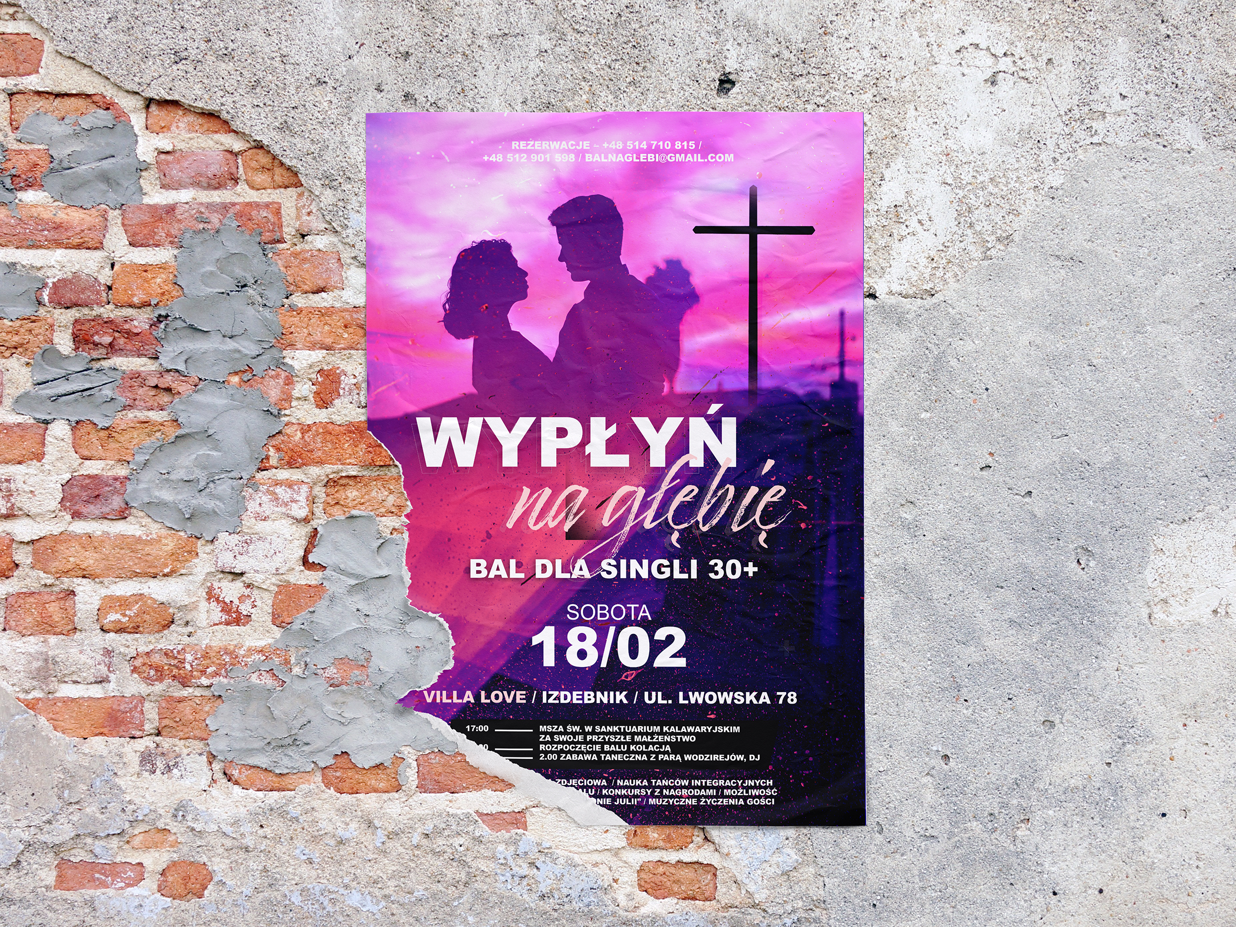 Stworzyłam projekt plakatu dla wydarzenia „Bal na Głębi”, katolickiego balu dla singli 30+. Projekt łączy elegancję z subtelnymi odniesieniami do duchowego wymiaru spotkania. Centralnym punktem plakatu jest dynamiczna, stylizowana grafika nawiązująca do tanecznego klimatu balu, uzupełniona o układ tekstu zawierający szczegóły wydarzenia.