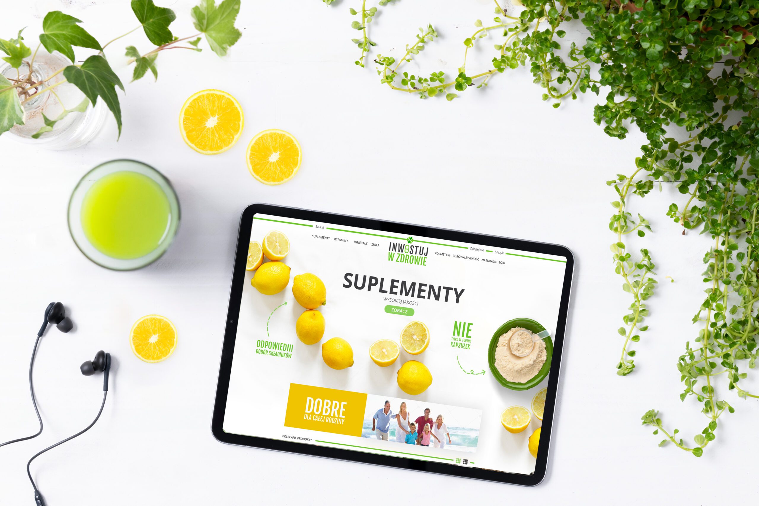 Stworzyłam projekt graficzny dla internetowego sklepu z suplementami diety. Strona główna została zaprojektowana z myślą o przejrzystości i intuicyjnym doświadczeniu użytkownika, z wyraźnie wyeksponowanymi kategoriami produktów. Logo zaprojektowałam w minimalistycznym stylu, podkreślając zdrowie i naturalność, co doskonale wpisuje się w charakter branży.