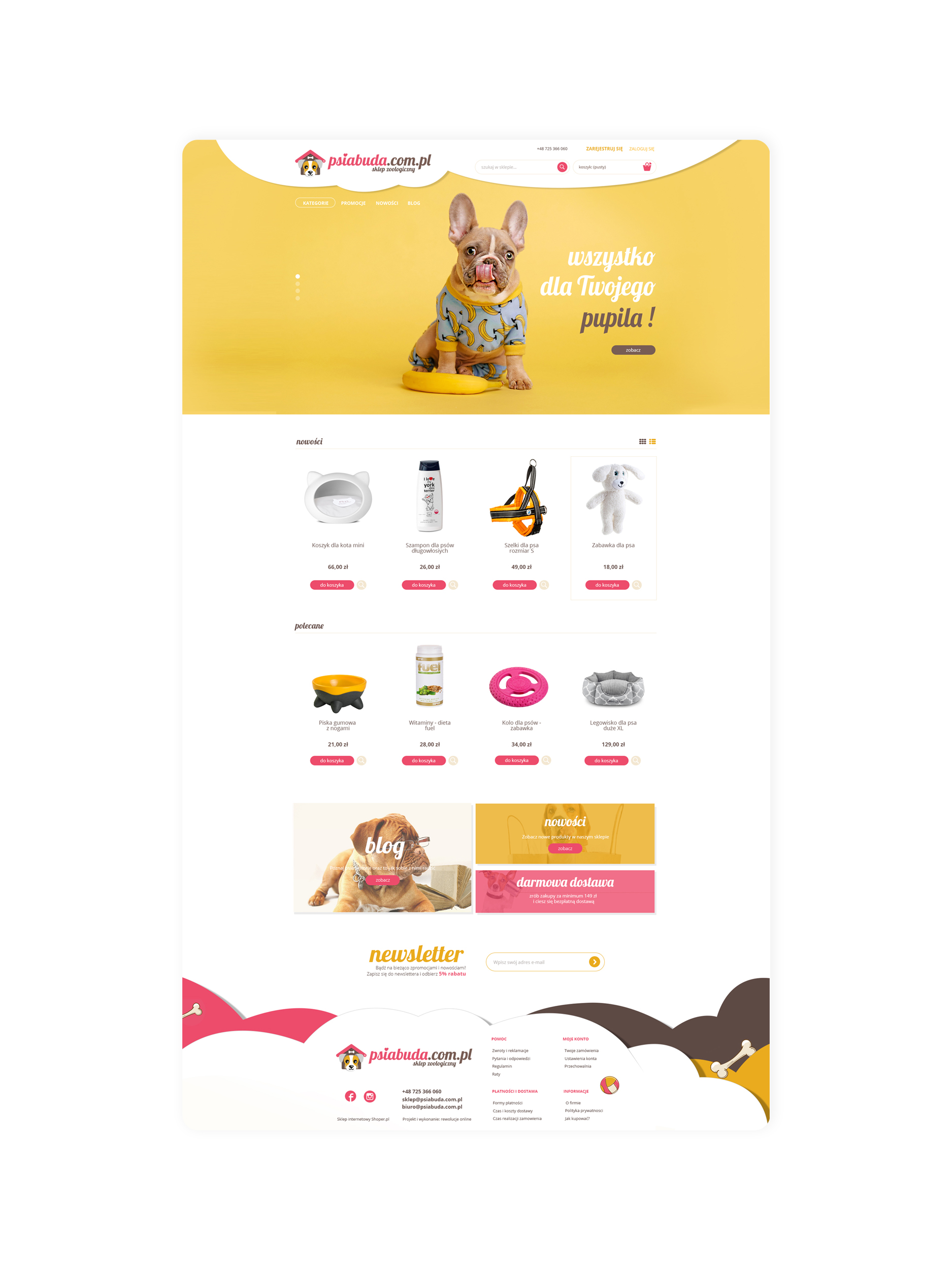 Stworzyłam nowoczesny i przyjazny design strony głównej sklepu internetowego Psia Buda, zachowując spójność z istniejącym logo marki. Projekt uwzględnia intuicyjną nawigację i atrakcyjną prezentację produktów, co zwiększa komfort użytkowników. Dodatkowo zaprojektowałam estetyczną ulotkę reklamową, która skutecznie przyciąga uwagę klientów. To kompleksowe rozwiązanie wspiera identyfikację wizualną sklepu i wzmacnia jego obecność w sieci.